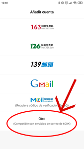 El primer paso es pinchar en el icono de Correo de tu dispositivo y una vez allí buscamos la opción de Otro. Hacemos click en Otro y en ajustes por defecto seleccionamos POP3.