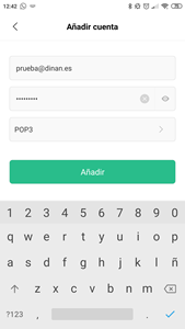 Tendremos que introducir la dirección de email y la contraseña de dicho correo electrónico, y le damos a Añadir,