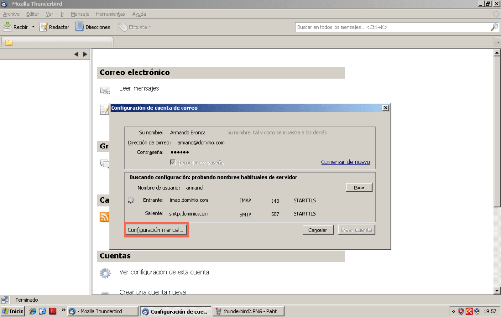 Para configurar nuestra cuenta pulsaremos en el boton de Configuración Manual