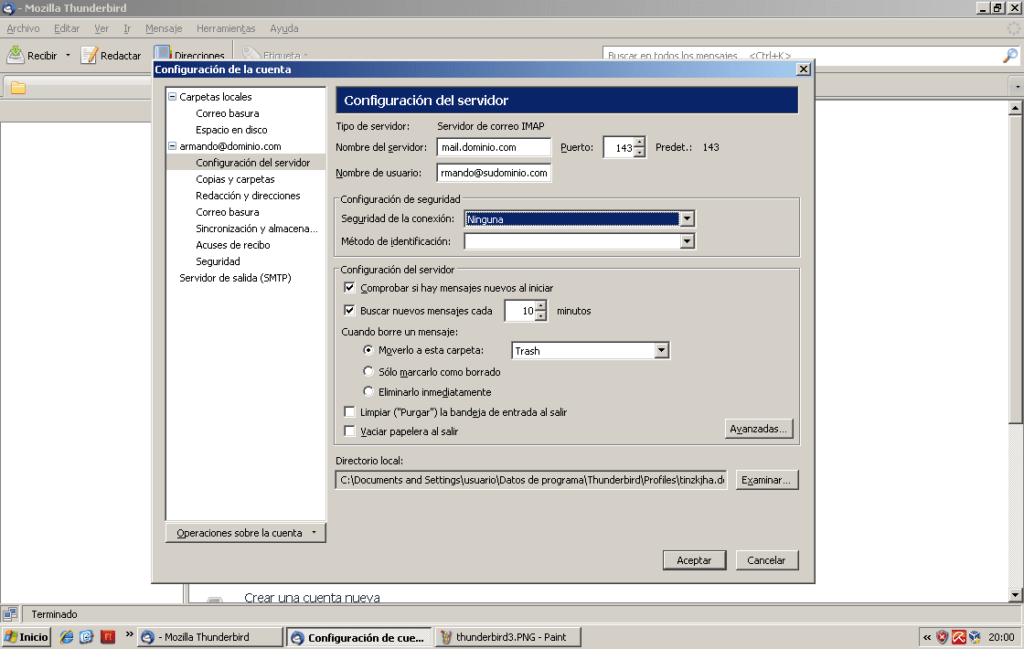 CONFIGURAR CORREO EN THUNDERBIRD