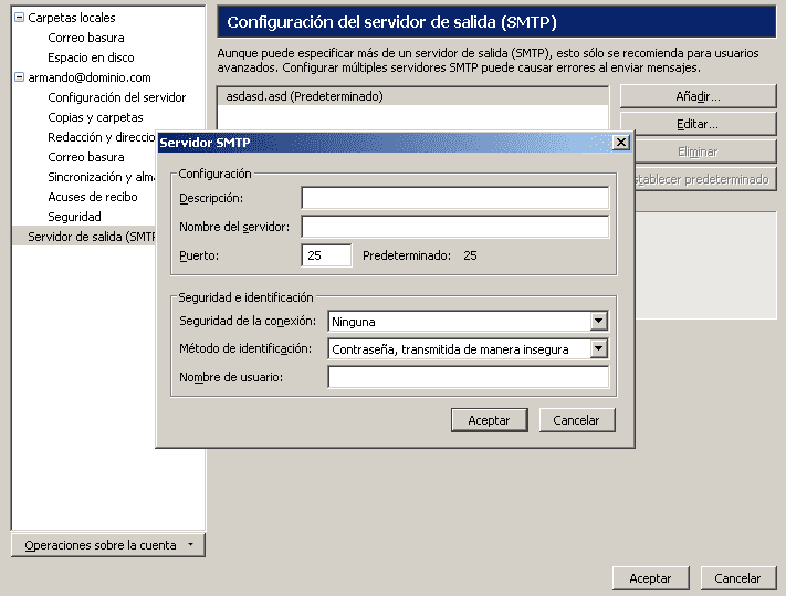 Una vez tengamos configurado nuestro servidor de correo entrante procederemos a configurar nuestro servidor de correo saliente.